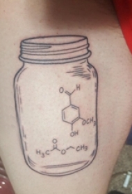 漂流瓶纹身 男生大腿上黑色的瓶子纹身图片