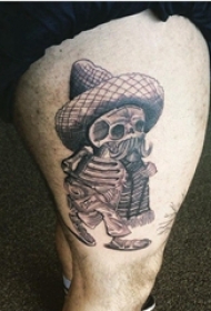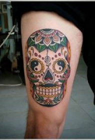 骷髅纹身 男生大腿上黑色的骷髅纹身图片