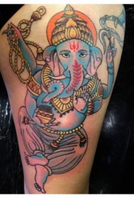 大腿彩色骷髅与玫瑰和昆虫纹身图案
