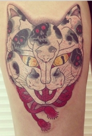 大腿彩色猫咪有章鱼腿纹身图案