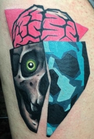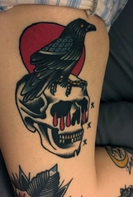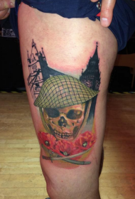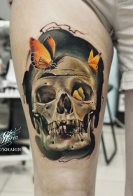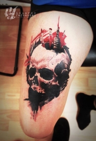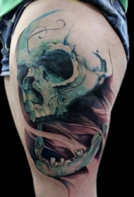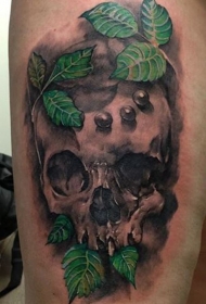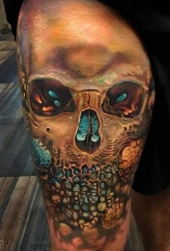 腿部壮观的现实主义风格彩色骷髅纹身图案
