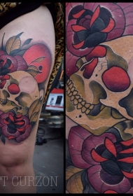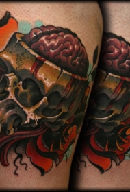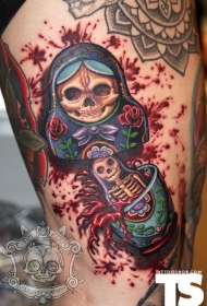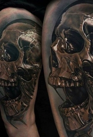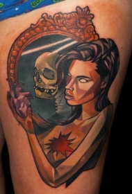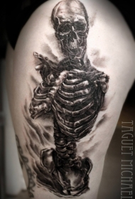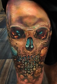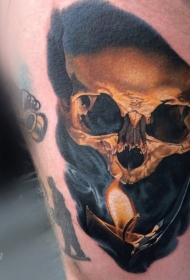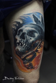 腿部现实主义风格彩色大腿骷髅纹身图片