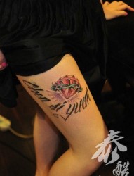 纹身520图库推荐一幅女人大腿蕾丝边纹身图片