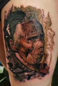腿部彩色现实主义风格烟熏印度肖像纹身