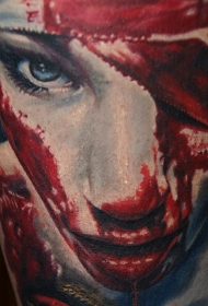 腿部彩色血腥恐怖的人物纹身图片