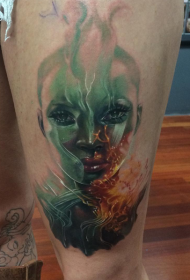 大腿彩色漂亮的女战士纹身图案