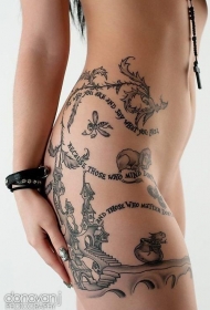 性感美女大腿动物和字母纹身图案