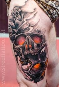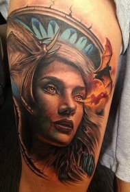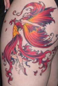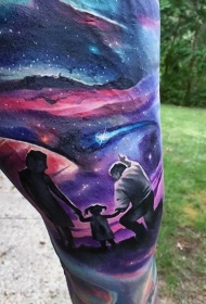 大腿甜蜜彩绘星空家庭人物纹身图案