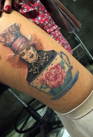 大腿彩绘爱丽丝仙境里的疯帽子肖像纹身图案