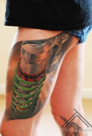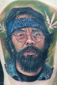 大腿彩色胡子男戴眼镜肖像纹身图案