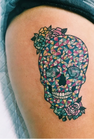 令人印象深刻的装饰风彩色骷髅纹身图案