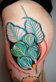 大腿难以置信的彩色叶子纹身图案