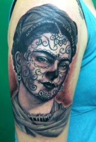 大臂墨西哥风格黑色女人与耳环纹身图案