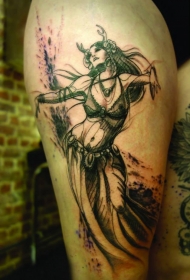 大腿令人印象深刻的黑色女人与蛇结合纹身图案
