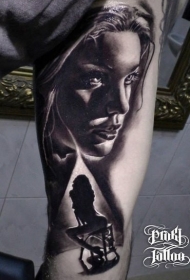 写实风格黑色十字架珠宝与毛骨悚然女人纹身图案