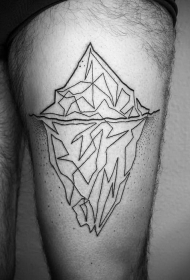 大腿雕刻风格黑色蜥蜴与植物几何纹身图案