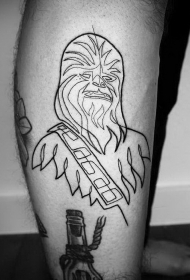 大腿雕刻风格黑白滑稽兔子纹身图案