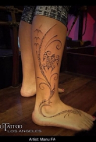 运动员纹身 女生腿上黑色的运动员纹身图片