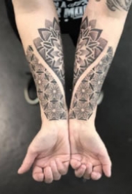 9张包小臂的黑色点刺梵花图腾纹身图案+