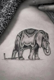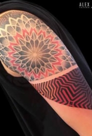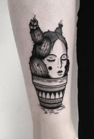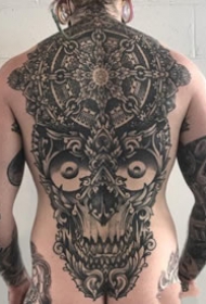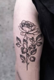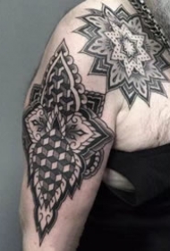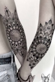 膝盖上的黑色点刺梵花图腾纹身作品图案