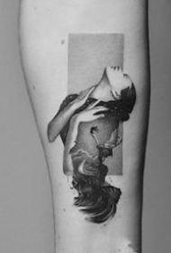 黑灰女郎+点刺风格的一组女郎黑灰纹身图案