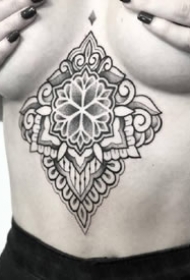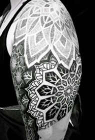 黑色调的点刺风格的繁花图腾纹身图案9张