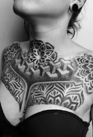 9张点刺风格的一组欧美人像黑灰纹身图片