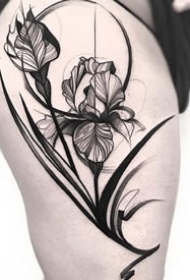 繁花花臂纹身:一组黑灰点刺繁花图腾纹身花臂作品欣赏