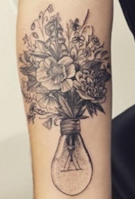 花朵在灯泡和瓶子里--黑色创意点刺花朵纹身图案作品