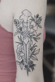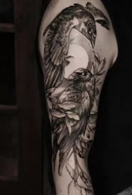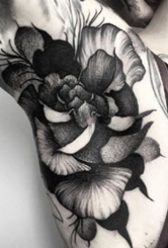 手臂和大腿上适合的大幅点刺黑灰花卉纹身图案欣赏