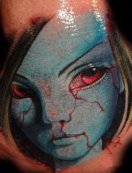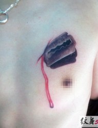 滴血狼头纹身图片 男人胸部上彩色的骷髅头和滴血狼头纹身图片