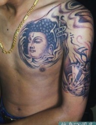 胸部面带微笑的佛像纹身图案