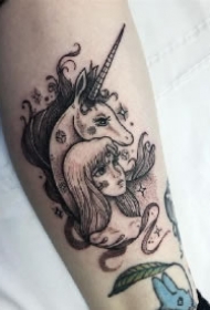 可爱独角兽纹身图案 男生手臂上黑色的独角兽纹身图片