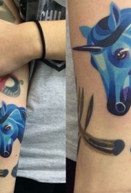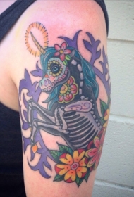 手腕卡通彩色独角兽与玫瑰纹身图案