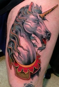 大腿漂亮的卡通彩绘独角兽肖像纹身图案