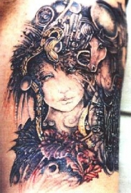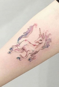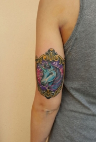 new school彩色独角兽丝带和花朵手臂纹身图案