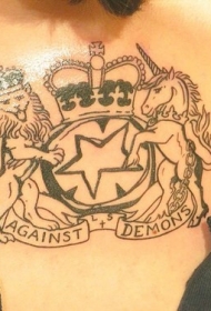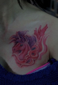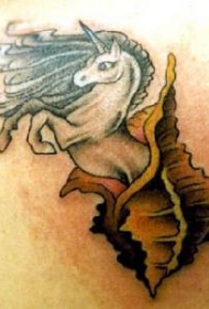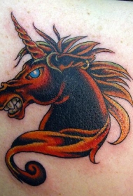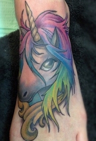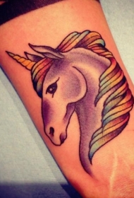 童话中的独角兽和彩虹色的鬃毛纹身图案