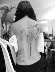 人月两团圆,小腿嫦娥玉兔彩绘纹身