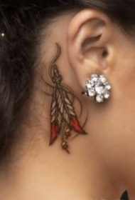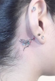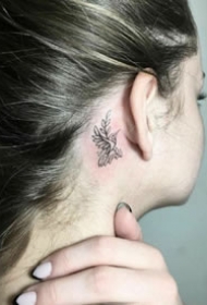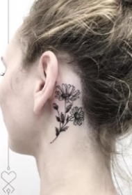 女生耳朵后面的小清新耳根纹身作品