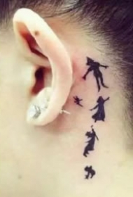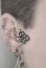 耳后部位的一组小黑灰纹身小图片