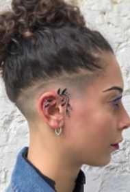 头部耳朵旁的school植物小纹身图案