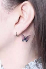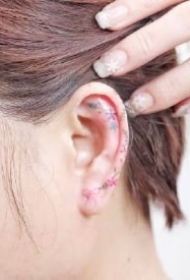 纹身耳朵 简约而又清新靓丽的耳朵部位纹身图案