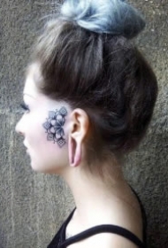 耳朵旁边的漂亮小黑色梵花纹身作品