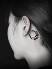 耳朵旁边的漂亮小黑色梵花纹身作品