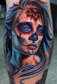 腿部彩色哭死的死亡女神纹身图案