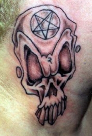 脖子棕色额头上有五角星的骷髅纹身