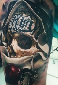 大腿写实的彩绘骷髅字母纹身图案