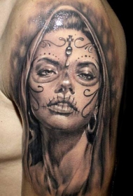 大臂黑灰死亡女孩额头十字架纹身图案