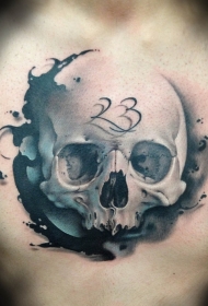 蓝色和黑色骷髅与数字纹身图案