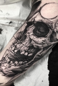 手臂黑色人类头骨雕刻风格纹身图案